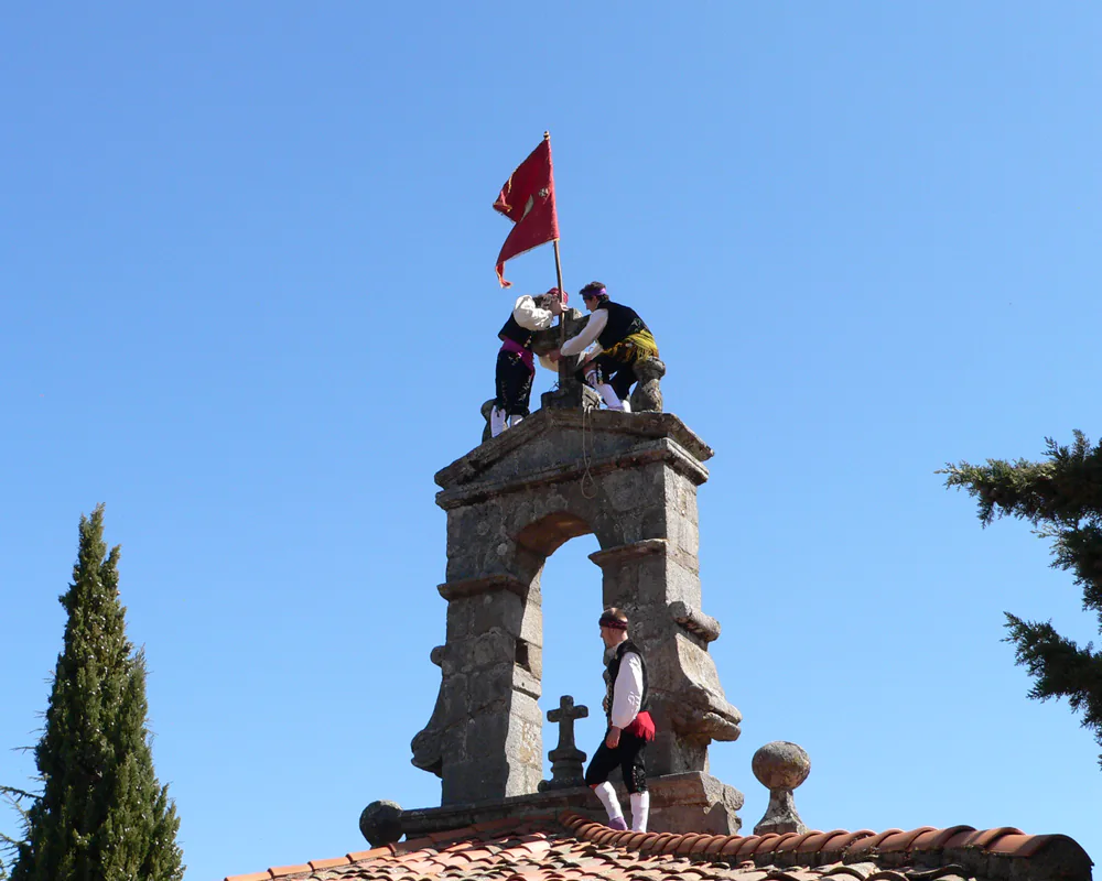 Los quintos colocan el pendón en la espadaña de la ermita. Antonio Luengo Becerro.